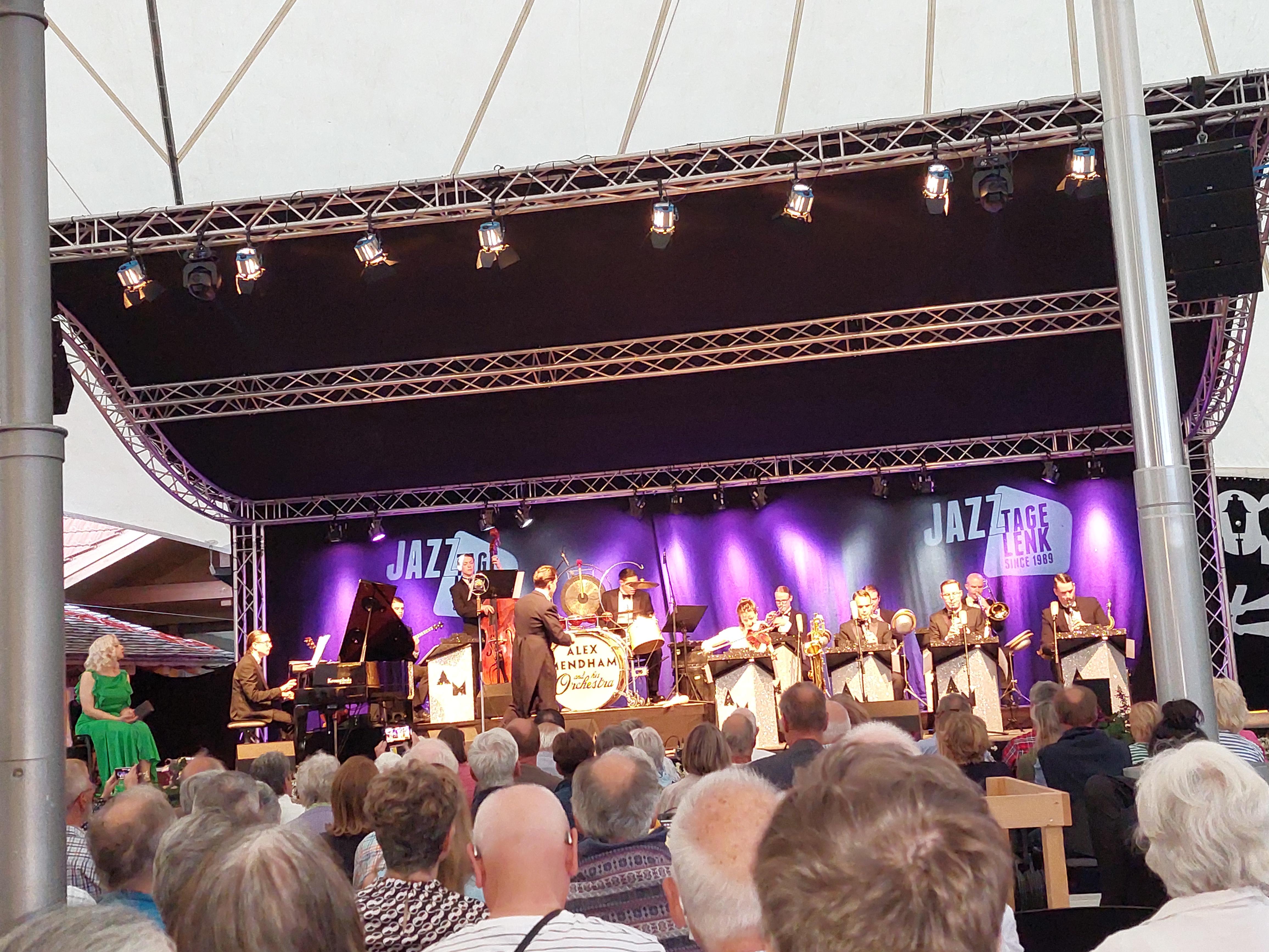 This was the beginning of a relaxed and friendly weekend of chatter and jazz music in various locations …. such as in a marquee in the Kronenplatz, Lenk, in the open air, part-way up a mountain, where we were glad that the temperatures were cooler.
